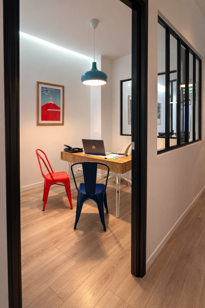 Rénovation et restructuration d’un plateau à destination d’un service public; L’espace contemporain est structuré par une ligne architecturale forte.